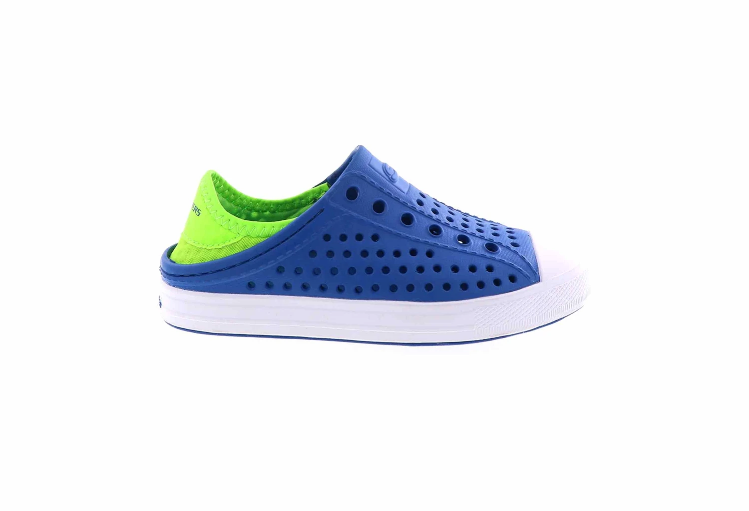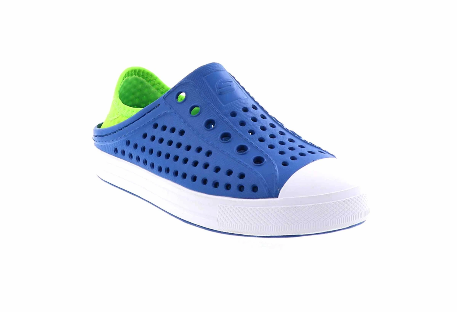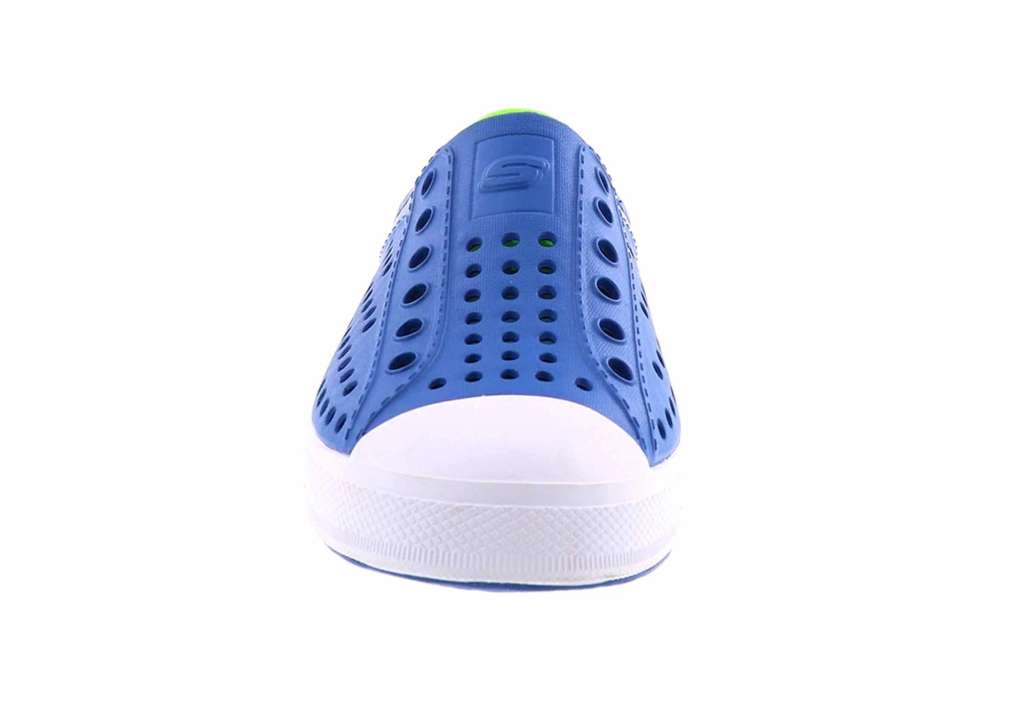 Keep the fun going all summer long with the Skechers Guzman Steps! Featuring a lighweight, shock absorbing midsole with a waterproof upper, this slip on style keeps them running through sprinklers and yards all day long!