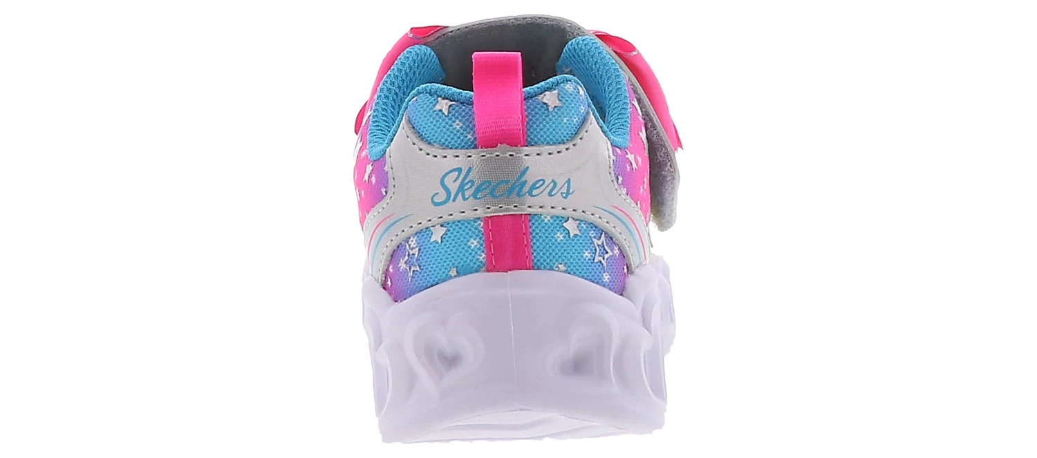 Your little one will love the Skechers Heart Lights All About Bows Toddler Girls’ (5-10) Athletic Shoe. The light-up design features a 3-D sculpted heart shape outsole with flexible traction. Your little one can slip on this shoe all by herself with the adjustable bow-tie hook and loop strap closure. Skechers Heart Lights All About Bows Toddler Girls’ (5-10) Athletic Shoe will brighten her day with an rainbow design and metallic star print upper!