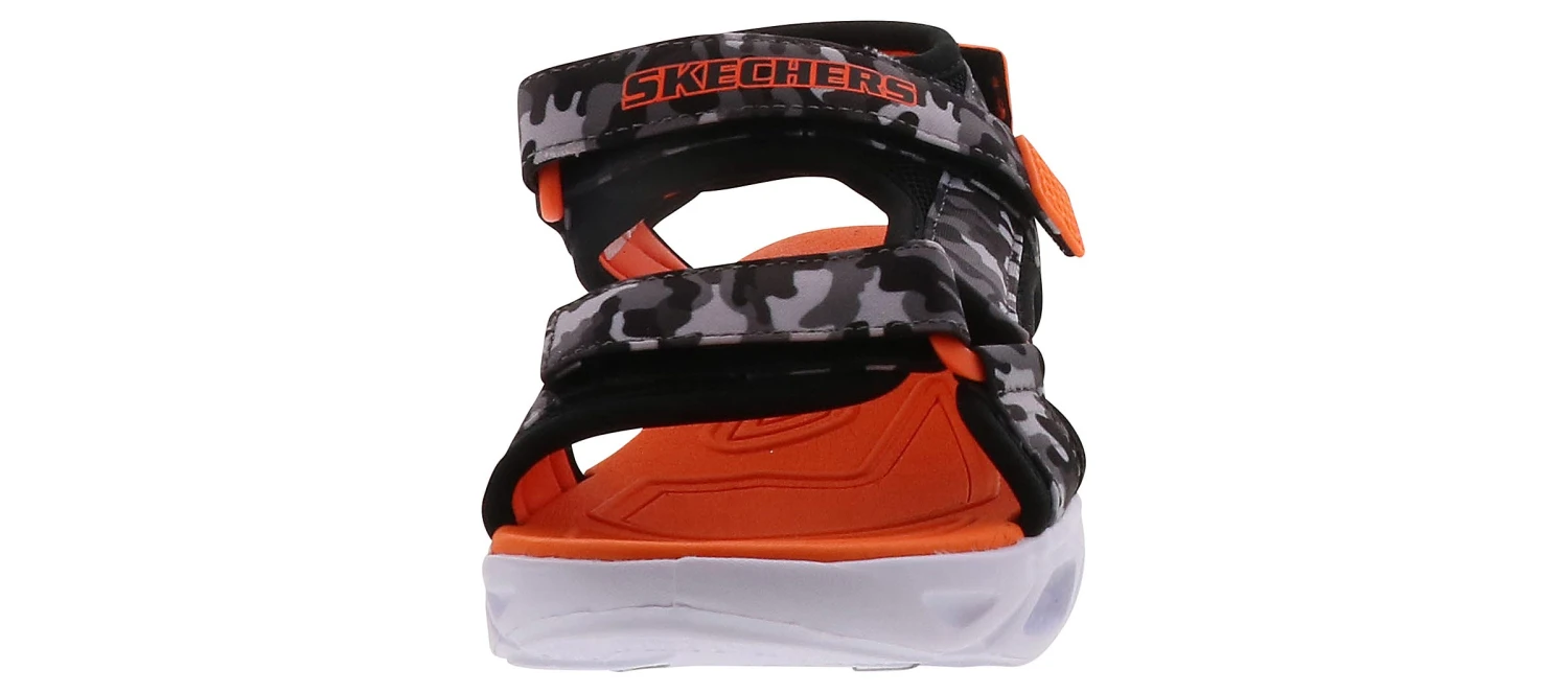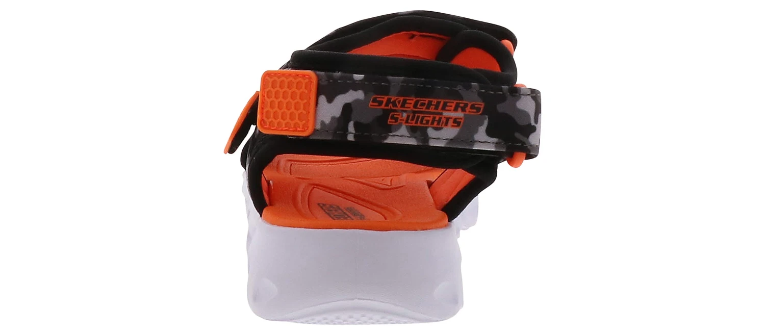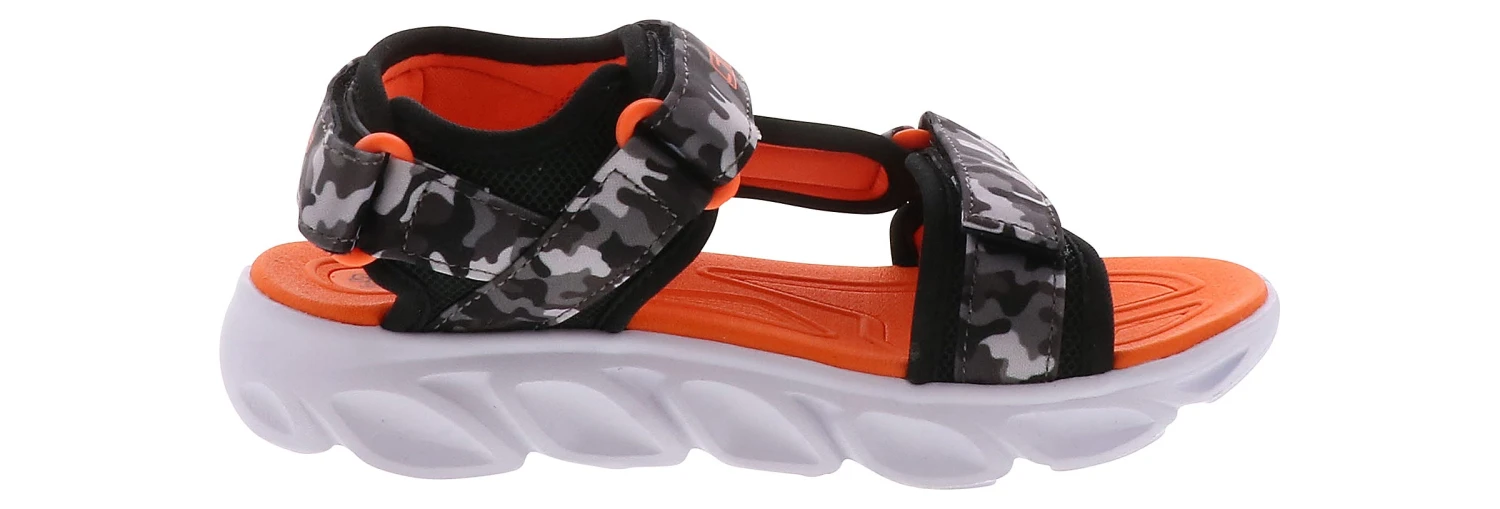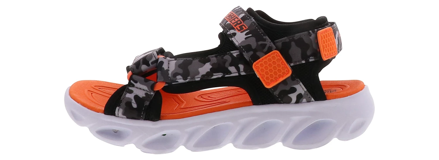 Keep his style colorful and super fun in the Skechers Hypno Splash Boys’ (11-3) Sandal . This style features a synthetic upper with a bright design and adjustable hook and loop closures. The Skechers Hypno Splash sandals has a contoured cushioned footbed and sculpted midsole with cutout side pods and blinking lights. He will love the Skechers Hypno Splash Boys’ (11-3) Sandal
