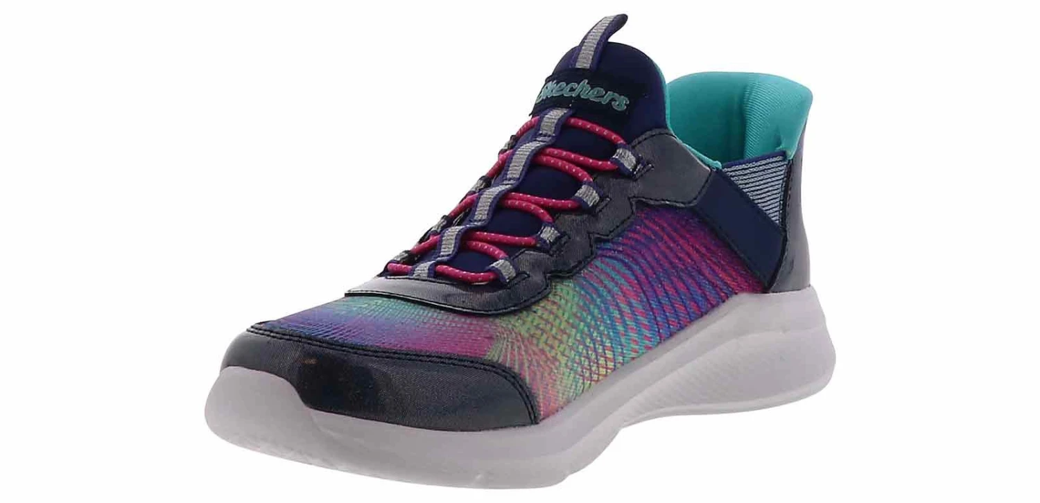 Skechers Dreamy Lites Girls’ (1-6) Running Shoe is perfect for your busy little one! This slip-on shoe features elastic laces and a colorful mesh upper. The air-cooled memory foam insole adds to the comfortable fit, while the durable outsole is supportive and provides traction. She will brighten everyone’s day while wearing the Skechers Dreamy Lites Girls’ (1-6) Running Shoe!