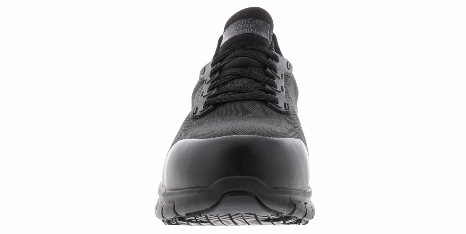 Look great and stay comfortable in these Skechers Suretrack IRMO work shoes. This style features a water and stain resistant mesh upper with an alloy toe and EH protection. TheSkechers Suretrack IRMO work shoes have an Air-Cooled Memory Foam insole for cooling comfort.