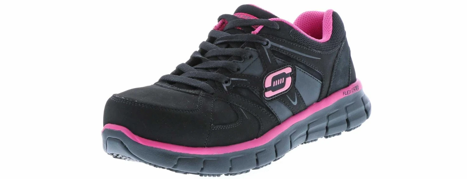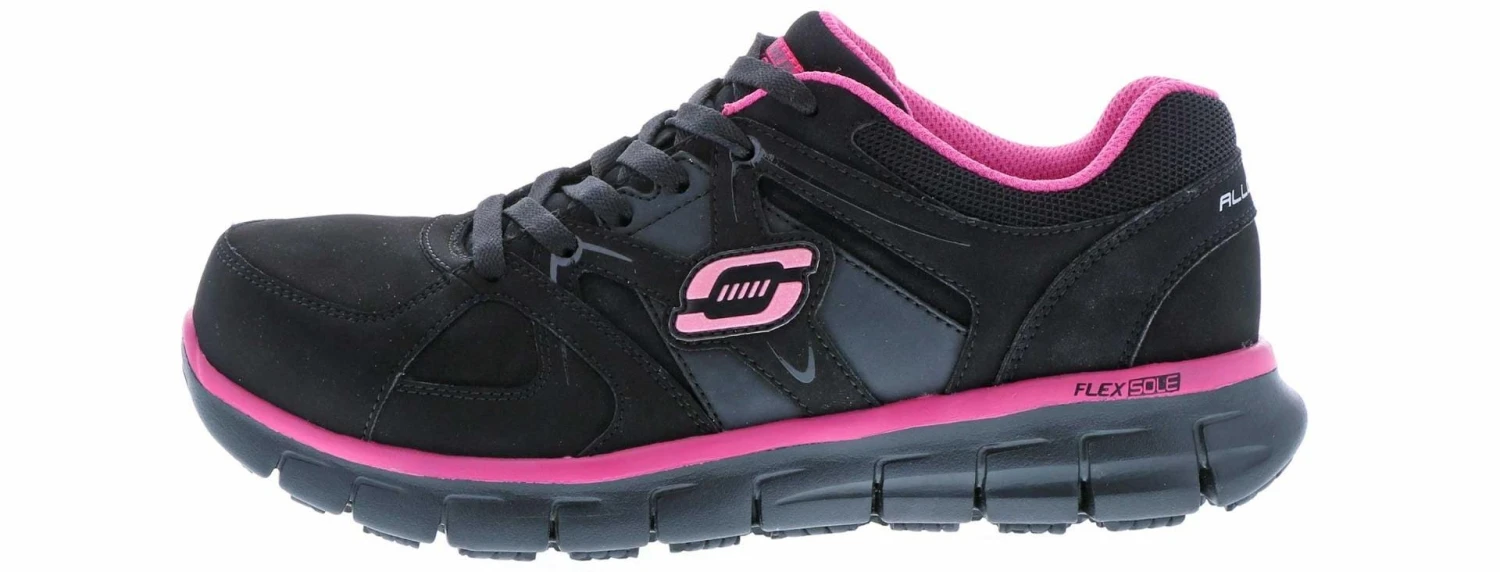 These Skechers Synergy Sandlot work shoes may look like the average running shoe, but they are made for working. These shoes are slip resistant and include a built-in safety toe to ensure your safety while on the work floor.