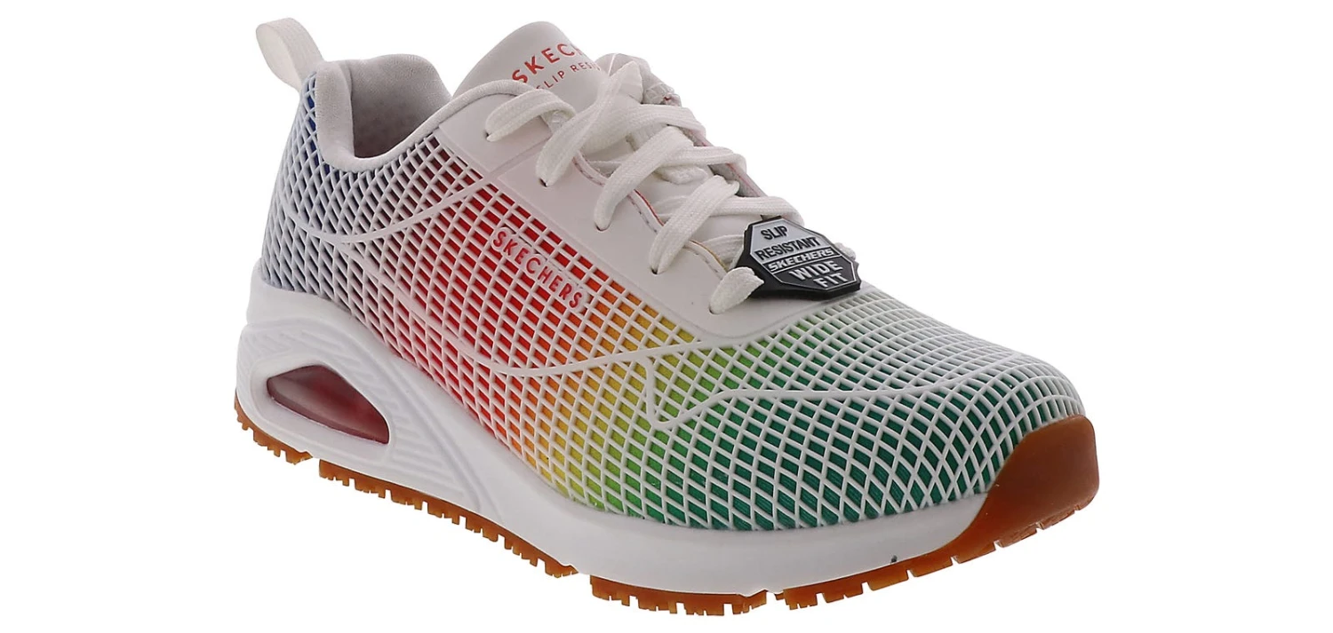 Feel protected and comfortable at work with the Skechers Uno Sr Women’s Wide-Width Slip Resistant Shoe! This soft-toe shoe features a sleek but colorful upper with a lace-up closure and padded collar for a secure and relaxed fit. The air-cooled memory foam insole adds extra padding and cushioning to your feet. Designed for your protection- this footwear meets ASTM F2892-17 standards for electrical shock resistance. While the rubber outsole is durable and adds traction to every step. Take on your day with comfort in the Skechers Uno Sr Women’s Wide-Width Slip Resistant Shoe!