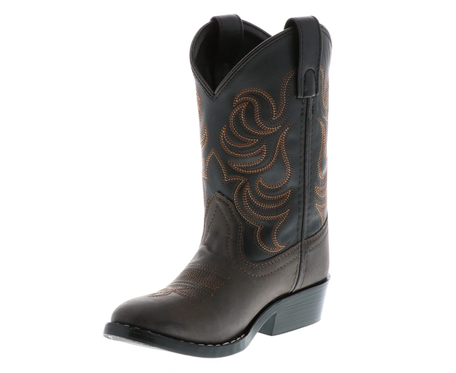 Dress your little one in this durable leather cowboy inspired Monterey western boot from Smoky Mountain.