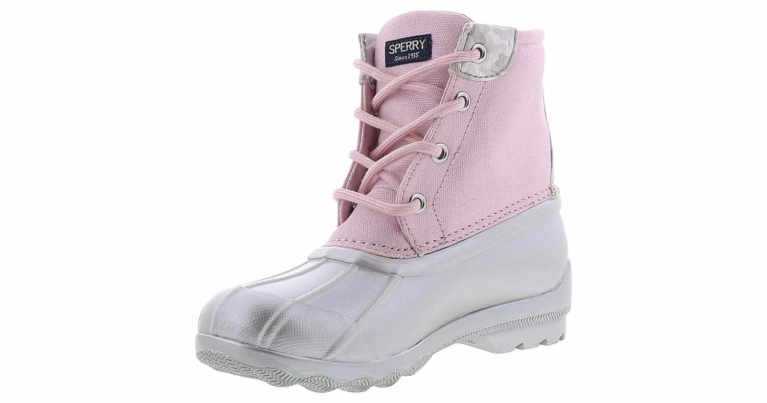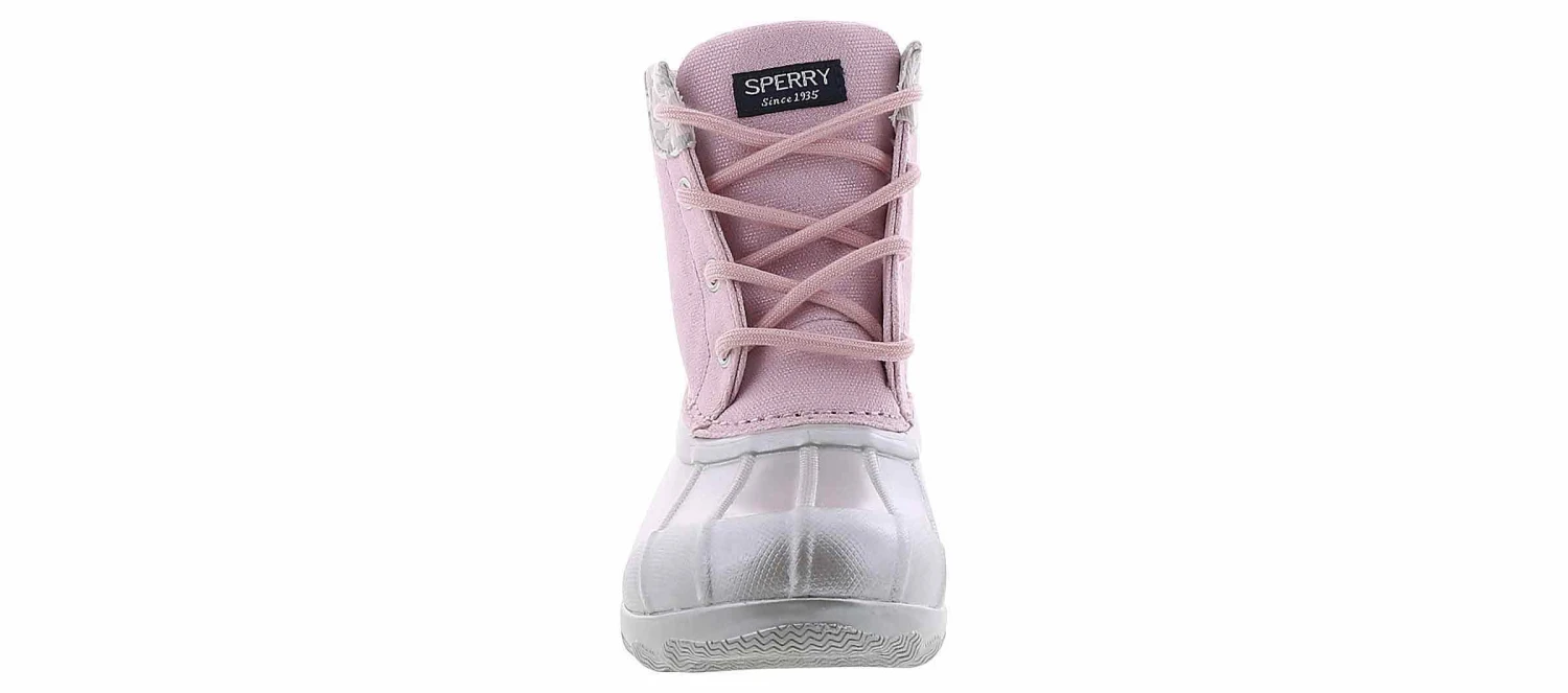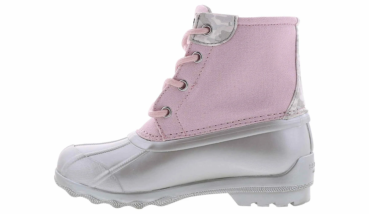 Take on cold days and wet surfaces with the Sperry Port Girls’ Weather Boot! This cute style has a waterproof rubber upper and a fabric shaft. The lace-up closure will keep her foot secure, and the padded lining adds a supportive fit. The cushioned insole gives comfortable padding, and the outsole is durable with tough traction. Snow days have never been more fun than with the Sperry Port Girls’ Weather Boot!