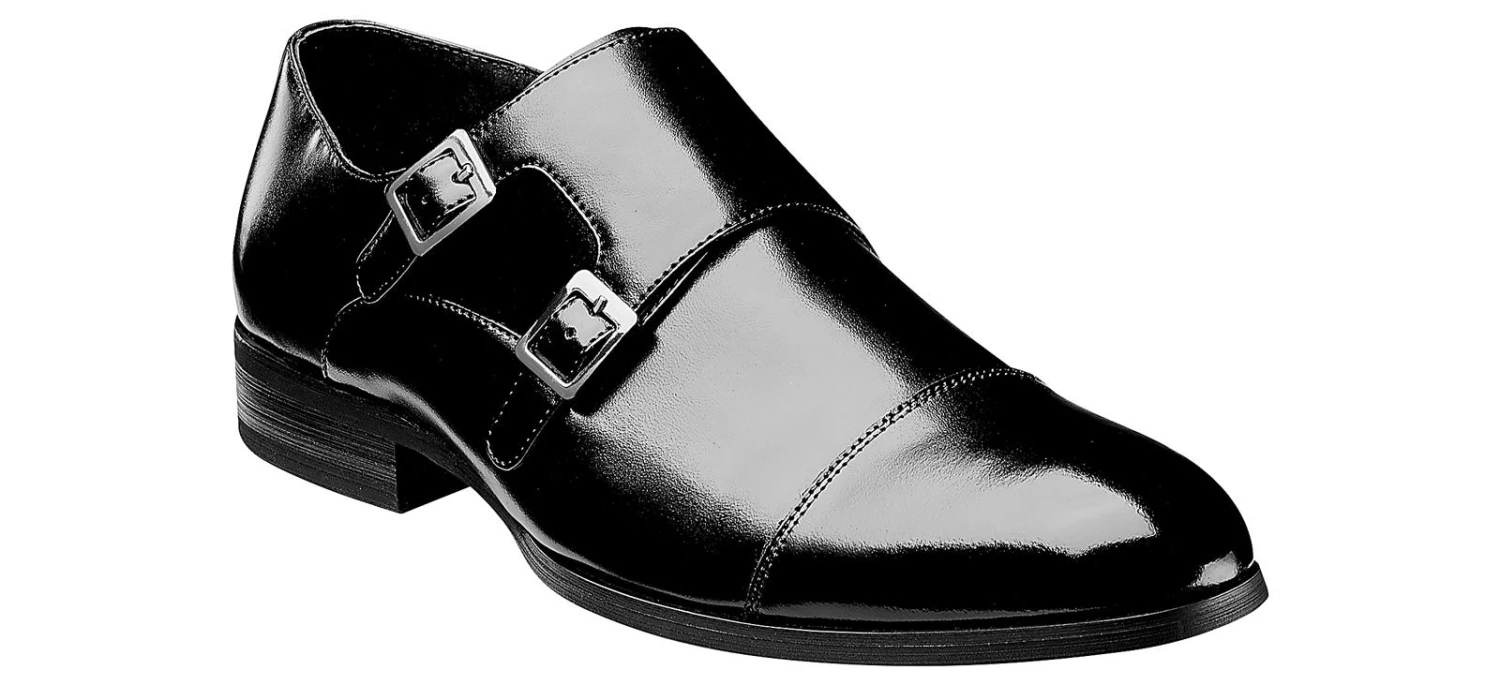 The coolest of the classics, the double monk strap brings a bit of edge to any look. The Stacy Adams Gordon Cap Toe Monk Strap takes the original design and adds modern touches like a sleek profile, a rich leather upper, gunmetal buckles, and a simple cap toe.