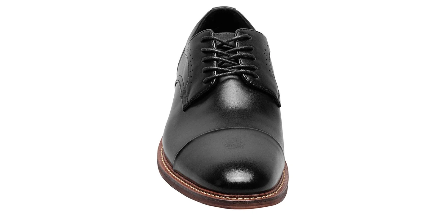 A style for every season and every reason, the Stacy Adams Maddox Cap Toe Oxford is a shoe every man should own. Sleek and elegant, the simple cap toe, perforated details, and stacked heel give it a versatile look that is easily dressed up or down.