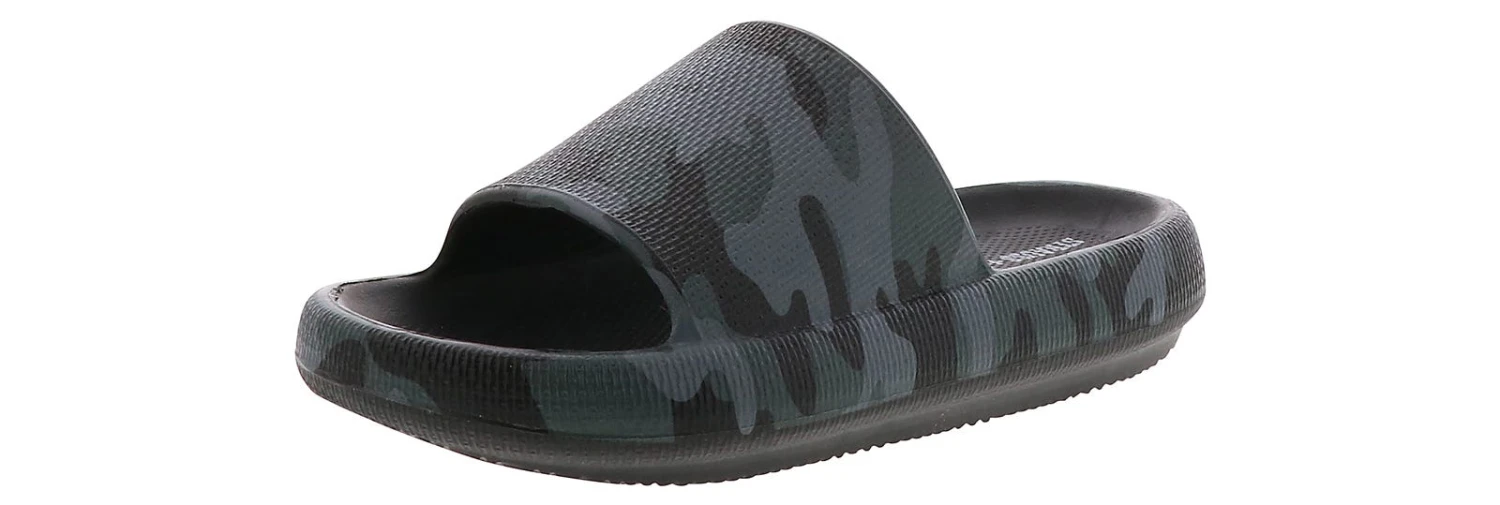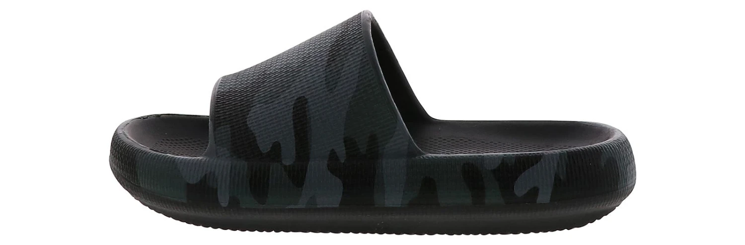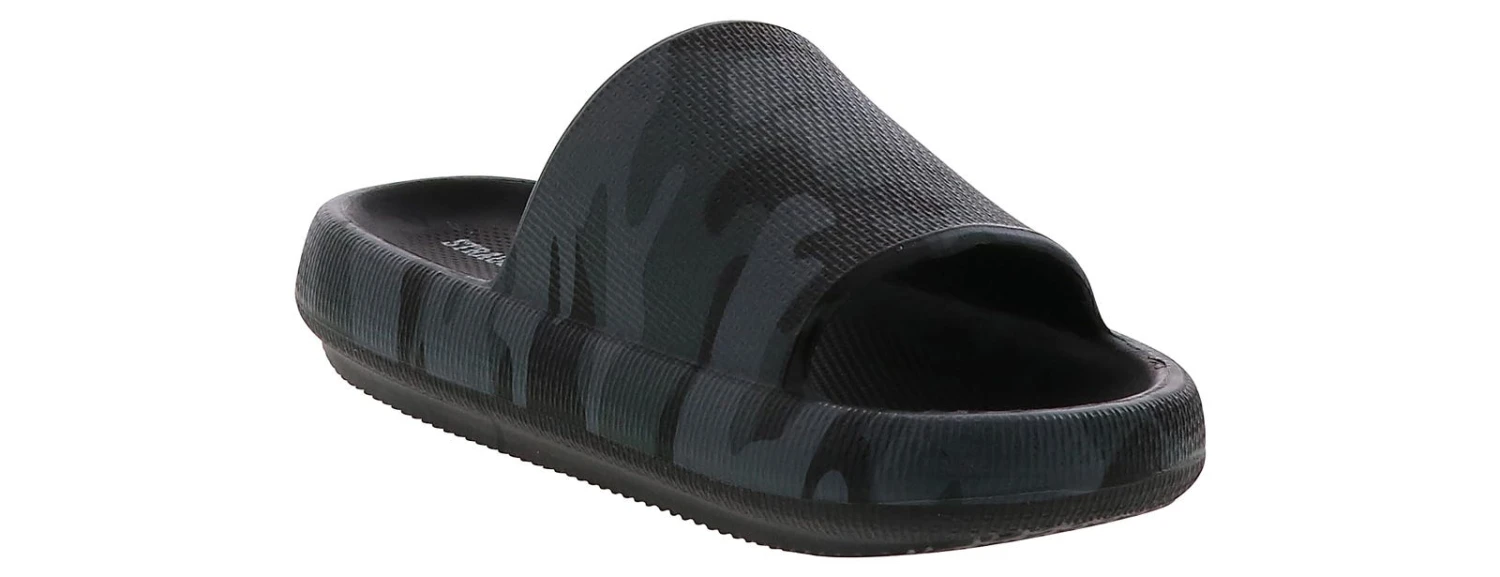 He can slip into style while wearing the Strauss and Ramm Boys’ (13-5) Athletic Slides. The upper strap featuring camo print is padded and synthetic. The cushioned footbed adds a soft and plush comfort to every step. While the EVA outsole is lightweight and flexible. Perfect for hot days, he can slip right into the shoe with its water-friendly feature. Strauss and Ramm Boys’ (13-5) Athletic Slide will complete your little one look!