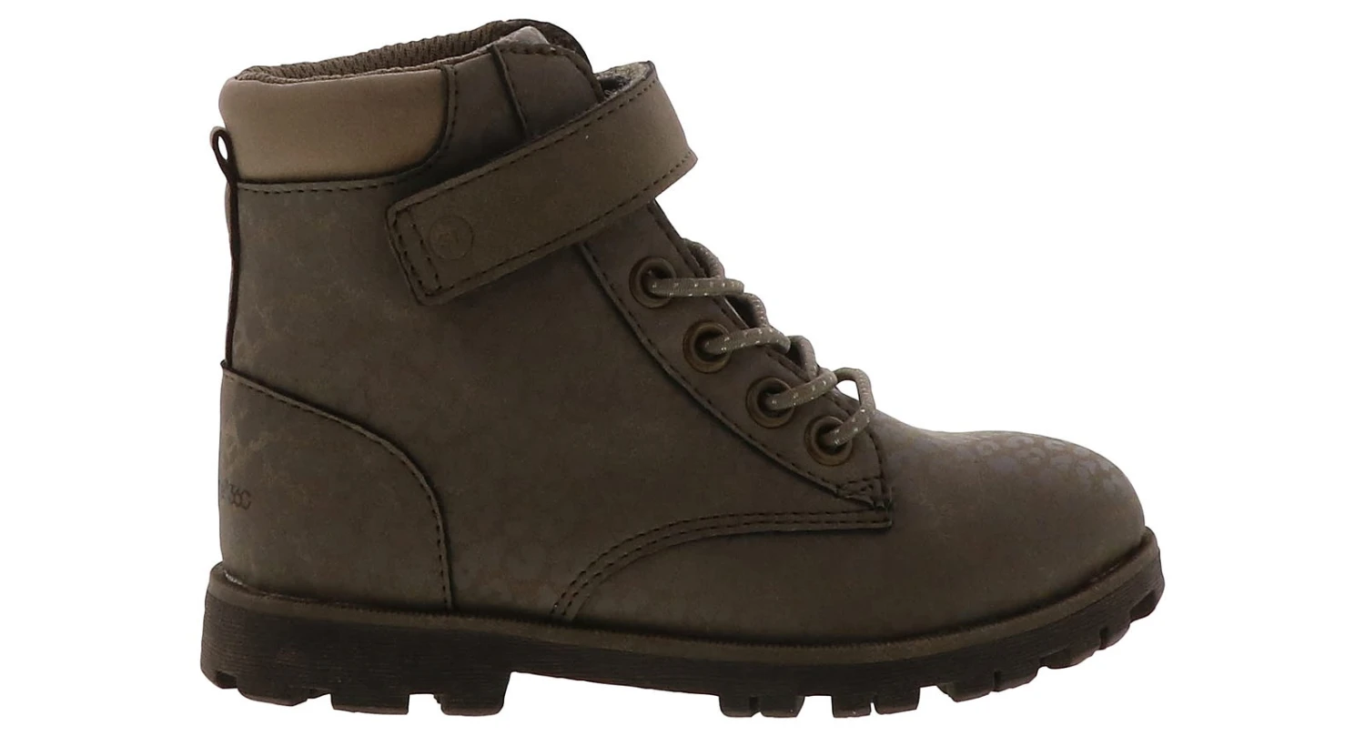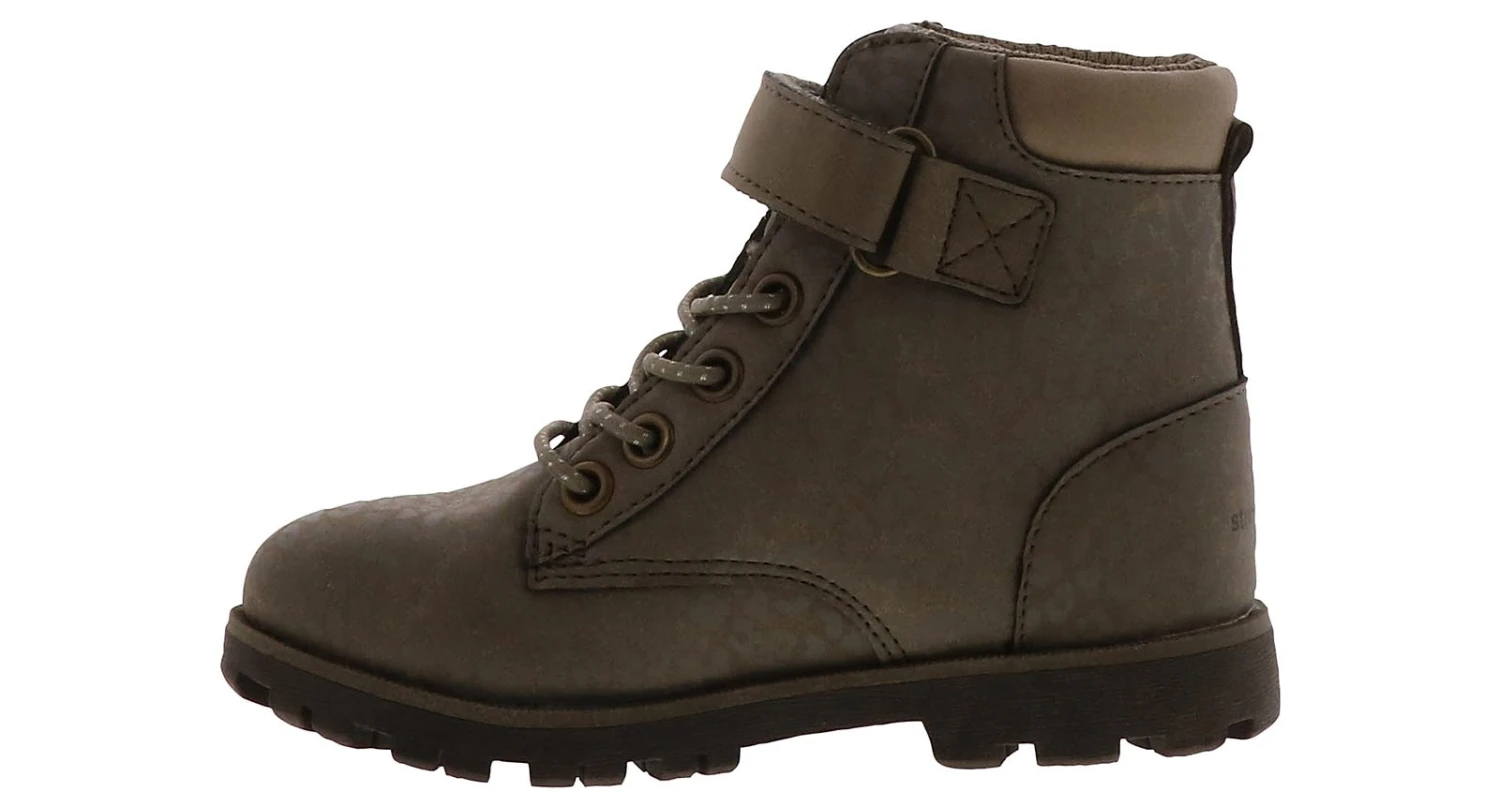 Stride Rite Jill Toddler Girls’(5-10) Combat Boot will add edge to her wardrobe! This boot is decorated with leopard print. The padded collar and mid-top feature ensures protection for her feet. While the elastic laces and hook-and-loop closure ensures a comfortable and secure fit. The rubber outsole is durable and offers stability. With comfort in mind, the removable memory foam insole is also machine-washable. The Stride Rite Jill Toddler Girls’(5-10) Combat Boot was made for walking!