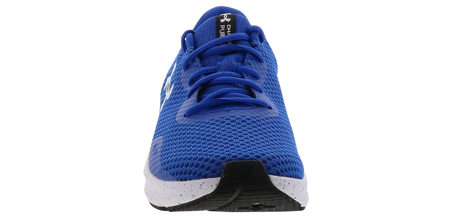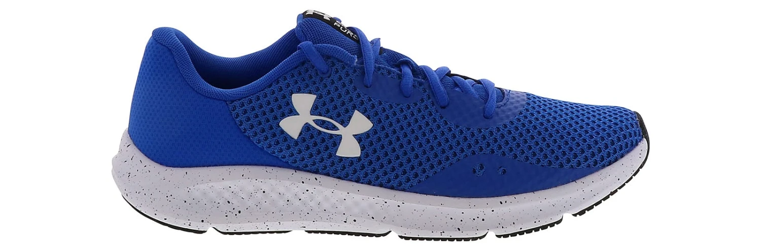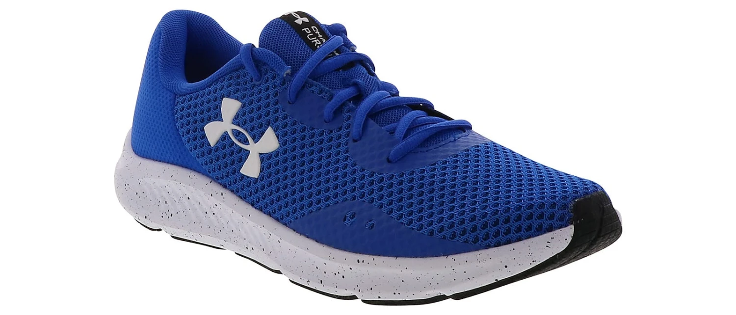 Run for miles in the Under Armour Charged Pursuit 3 Men’s Running Shoe! This lace-up style features a mesh upper and cushioned insole for breathability and comfort. An extra padded collar gives this versa blue shoe an extra boost. Take off in the Under Armour Charged Pursuit 3 Men’s Running Shoe!