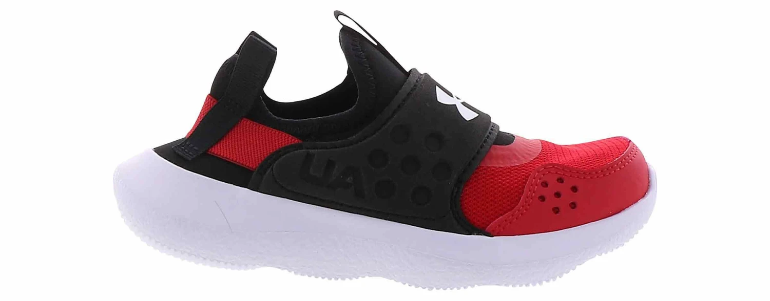 The Under Armour Runplay Boys’ Running Shoe is a great match for little ones on the move! The breathable mesh upper is designed with a molded EVA strap for cushioned comfort and a lockdown fit. This slip-on style is constructed with double heel webbing for an easy on and off. The cushioned insole and rubber outsole provide lightweight comfort and flexibility!
