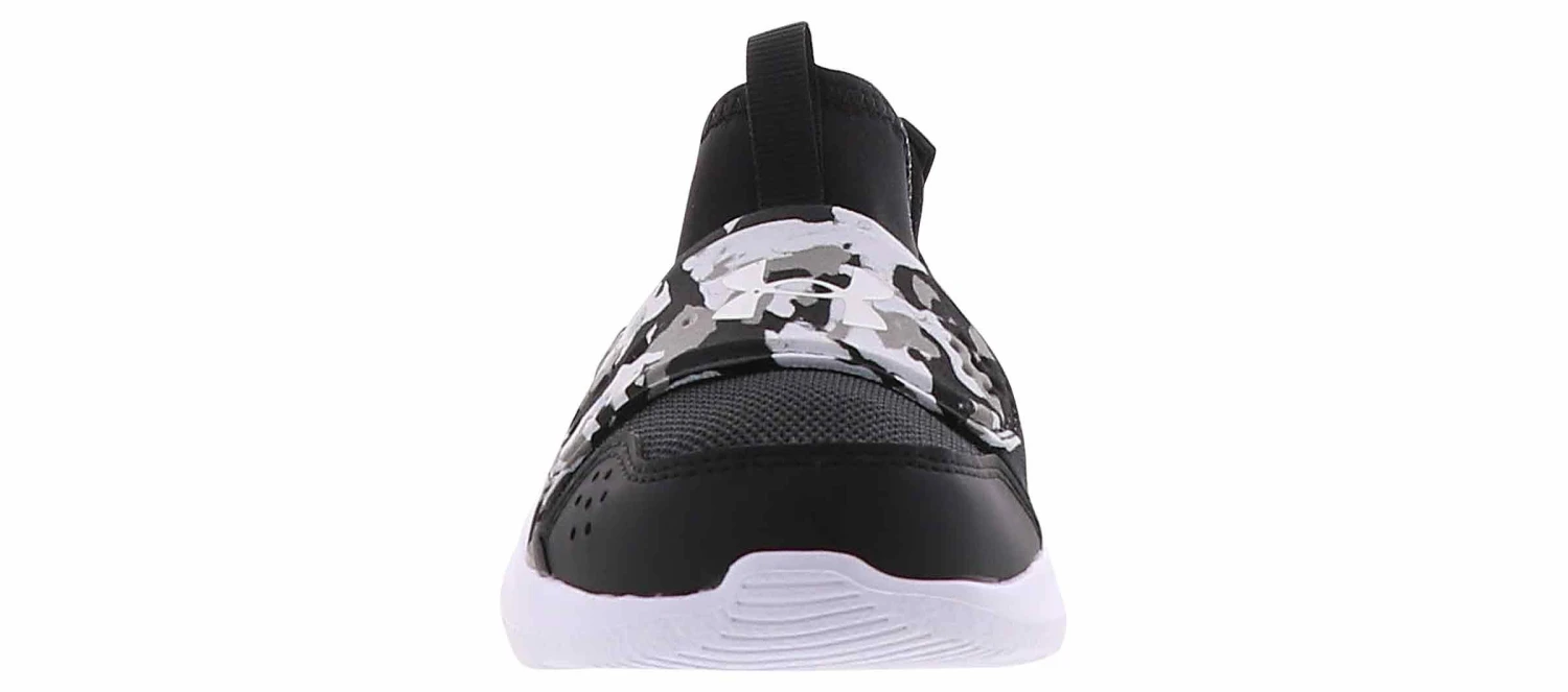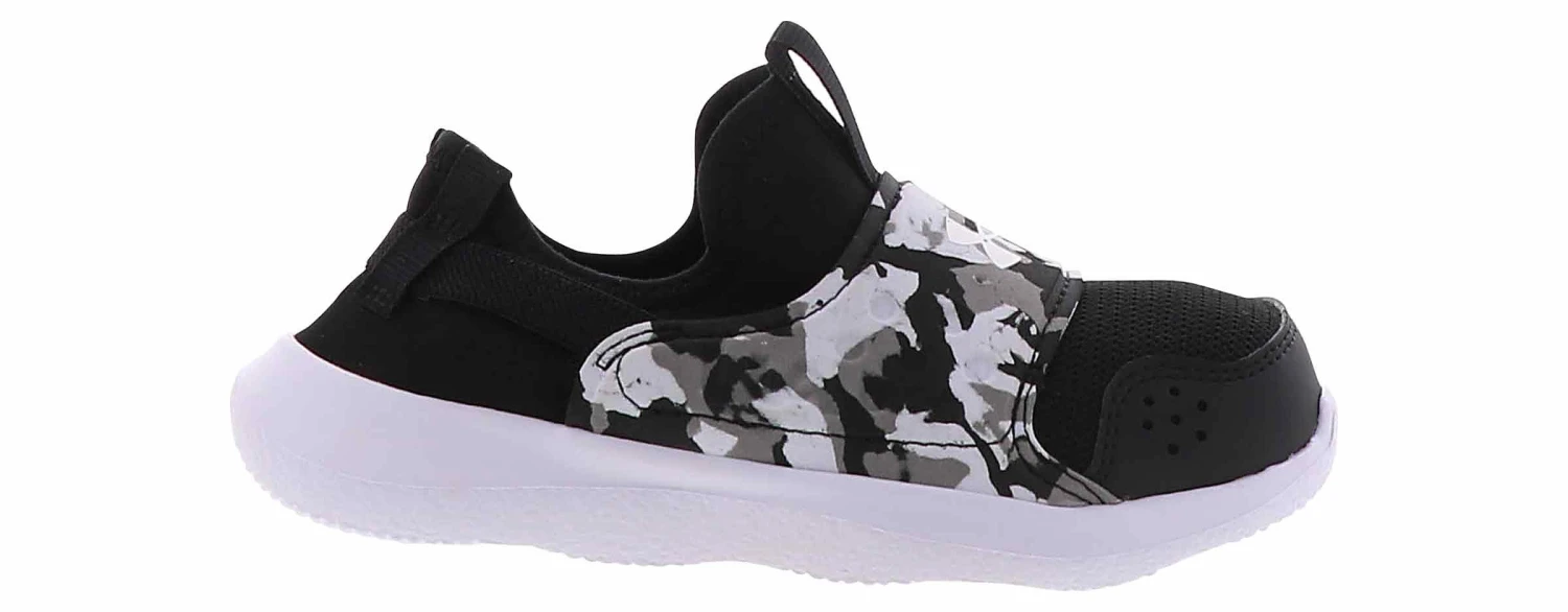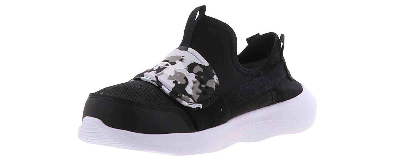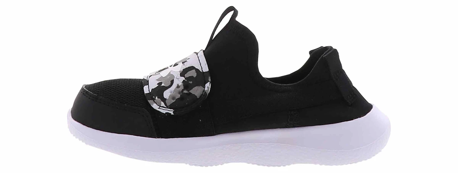 The Under Armour Runplay Toddler Boys’ Running Shoe is a great match for your active little boy! This lightweight style features a breathable mesh upper with an EVA strap that gives a comfortable and lockdown fit. The slip-on construction with double heel webbing gives an easy on and off, and the synthetic toe cap adds durability where he needs it most. The cushioned insole and flexible rubber outsole will keep him comfortable on the go. He can wear the Under Armour Runplay Toddler Boys’ Running Shoe to stay comfortable during long days!