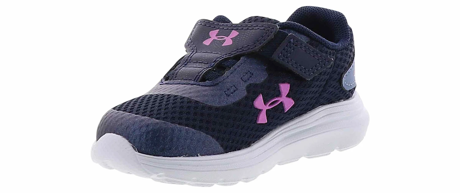 The Under Armour Surge 2 AC Toddler Girls’ (5-10) Running Shoe will give her the cushioned and comfortable feel she needs while on the go! The lightweight, breathable mesh upper delivers increased ventilation. The adjustable hook-and-loop strap closure and TPU heel overlay add durability and support. The cushioned insole and rubber outsole deliver a custom fit and added grip.